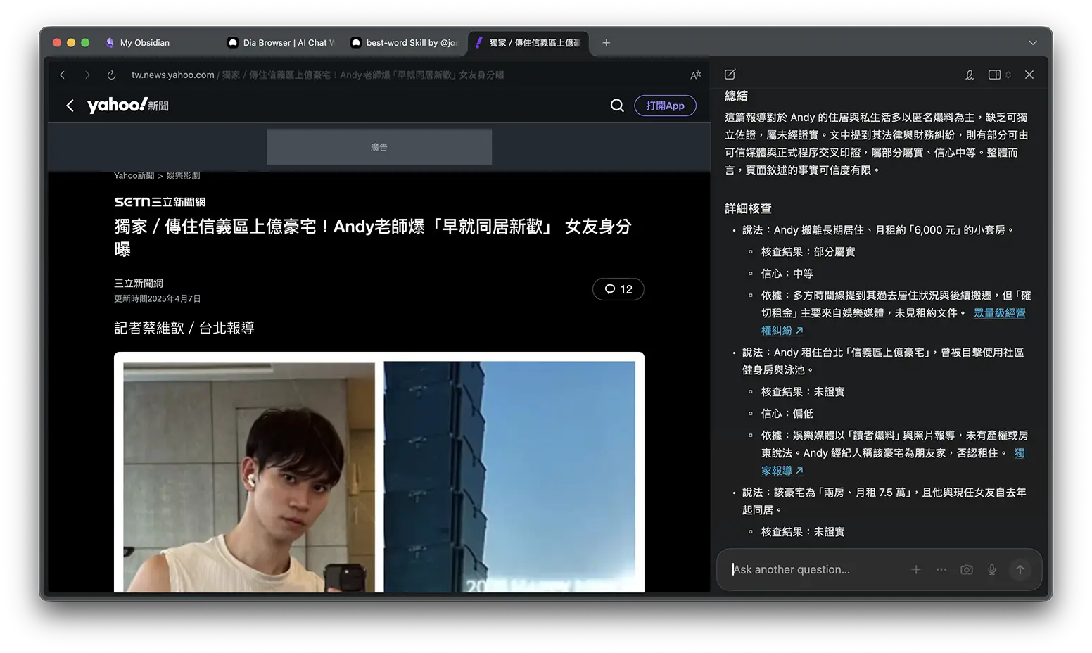 上圖是用 Dia 的 skill 功能來檢查新聞: