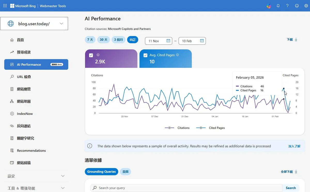 - 官方說明文件 AI Performance in Bing Webmaster Tools