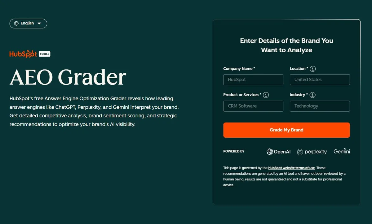 Hubspot 的 AEO Grader