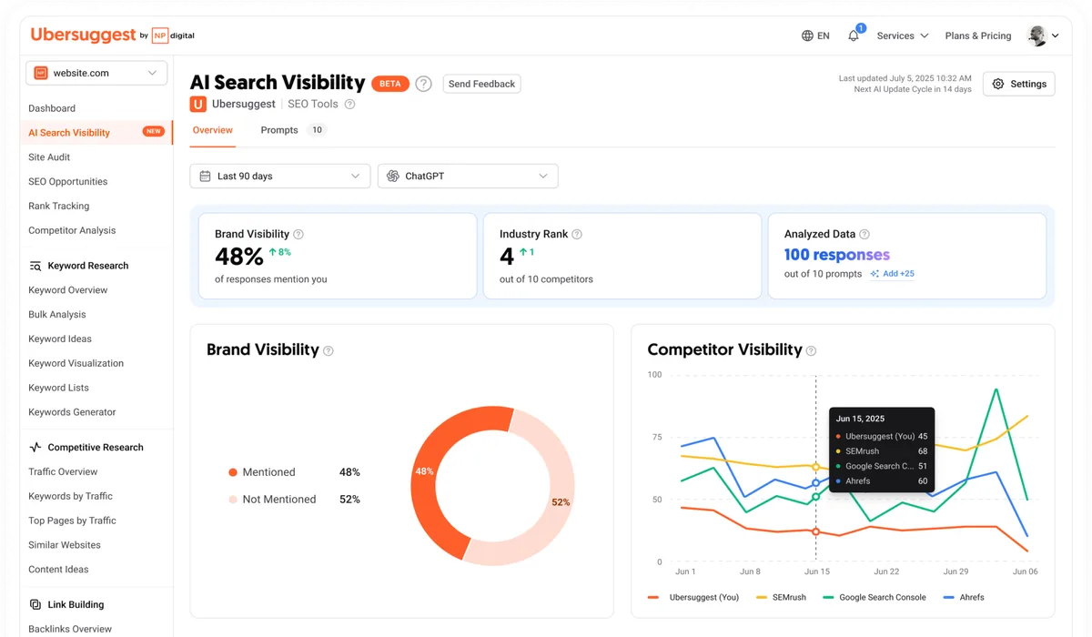 Ubersuggest 的 AI Search Visibility