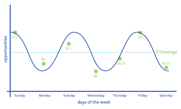 然而,您的費用會均分到一週的廣告費用中,因此無須擔心超出預算的情形。一週是指從週日至週六。 如果為了達到此成果而在某一天付出較高費用,我們就會壓低其他天的廣告費用。