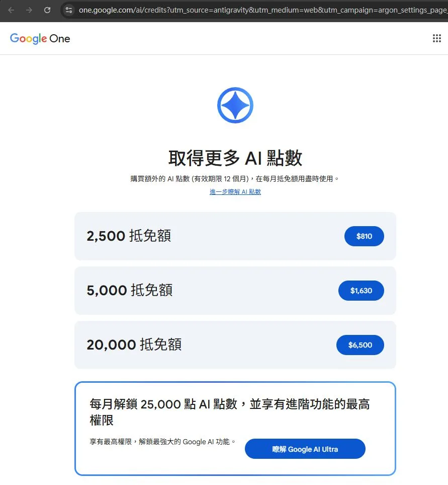 本來把其他 Google 帳號加到家庭的,是每個人有獨立 Antigravity 可用額度。到了現在也變成整個家庭共用額度的。這都是 Google 為了開始販賣點數。