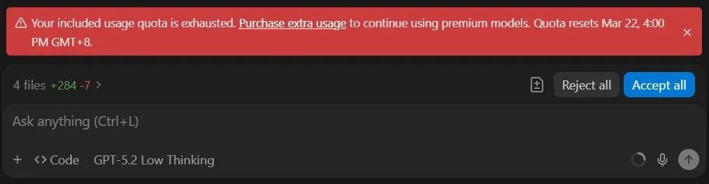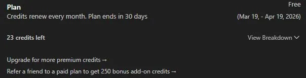 - 付費方案雖說可以用更強大的模型,但還是有一套 premium requests 的使用限制,用其他套 AI 工具,來回修改耗不了多少 token 的東西,同樣的用法在 GitHub Copilot 這邊可能瞬間用完。