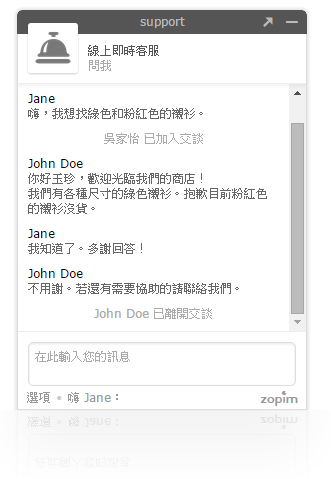 Zopim 提供 Javascript API,比如說可以做到某會員登入網站,再點選線上對談,即使客人不打名字,管理員還是可以知道現在對談的人在網站登入的會員姓名、電話、E-mail 等資訊,而不會被客人沒頭沒腦的問問題。