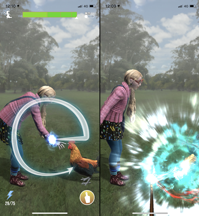 但跟寶可夢GO最大的不同有三處,第一,巫師聯盟有體力機制(遊戲裡叫做咒語能量),抓怪、打堡壘都會大幅消耗咒語能量,沒咒語能量就啥事都不能做。而且升級不會回復咒語能量,也沒有道具可以回復咒語能量,也不像一般RPG把角色擺著每隔20分鐘就會回復咒語能量,都沒有!