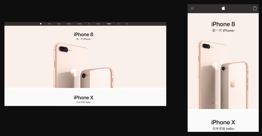 Apple 在大型寬螢幕跟手機直立螢幕有不同的顯示方式,而且不是滿版,下方還會露出第二組廣告圖文。